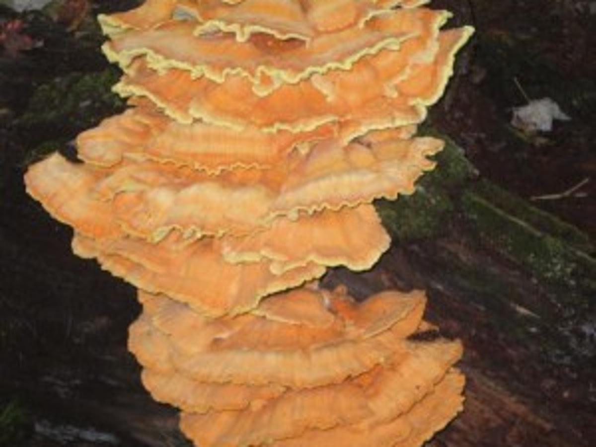 . Web Tricholomopsis rutilans settle on the stumps of pines or other conifers. Web Sulphur or Chicken. Old Man of the Woods 5.